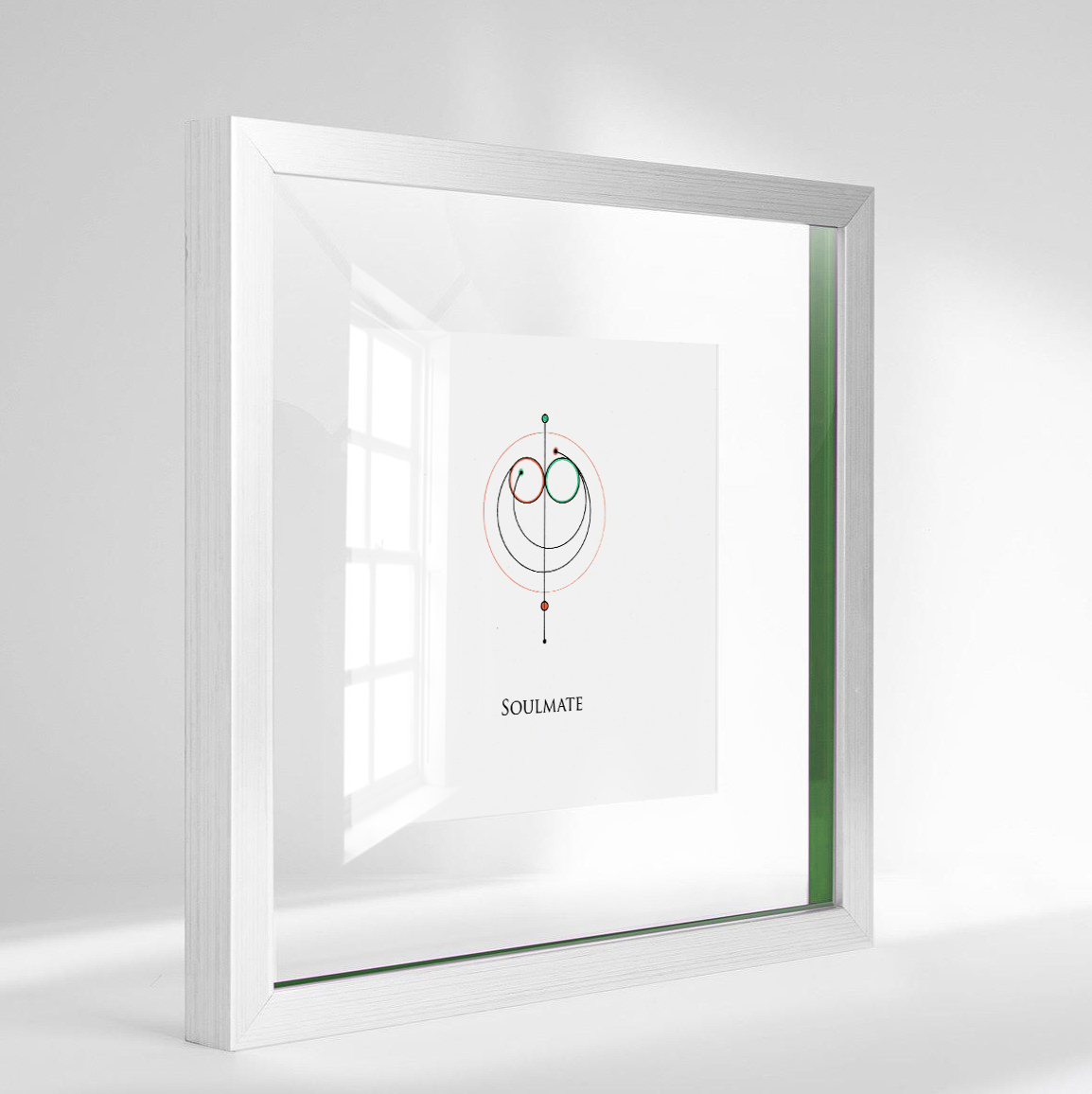 | Frame | Handcrafted wooden frame with a metal finish, between two sets of crystal clear glass finished with high quality green paspartu. Ready to mount. |